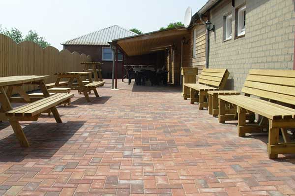 De verblijfzaal (112 m2) is naast tafels en stoelen ingericht met een zithoek met televisie en tafeltennistafel. Deze ruimte biedt u uitstekende mogelijkheden voor binnenactiviteiten zoals spellenavond, feestje, toneelavond of gewoon gezellig samenzijn! Achter de grote accommodatie bevindt zich een verhard terras met tuinmeubilair en verlichting. Aan dit terras bevindt zich ook een omheind grasveld.